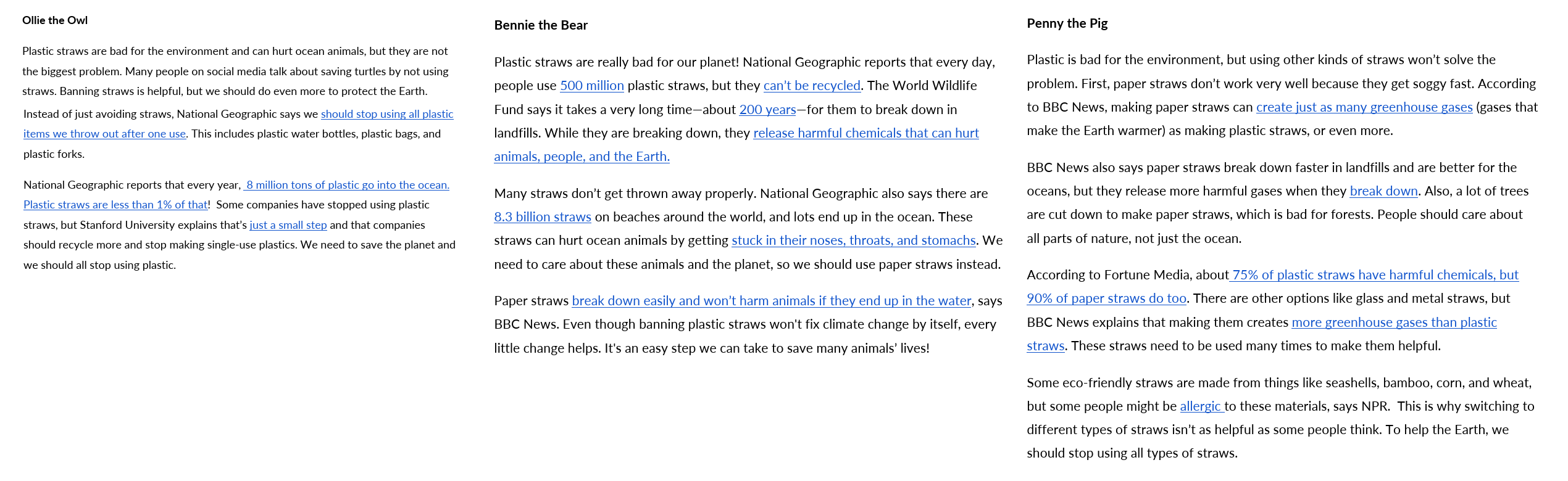 A DUCC lesson more indicative of its creator’s bias is its “Save the Turtles” exercise, which purports to teach kids about how to evaluate different points of view – seemingly an exercise in viewpoint diversity. The exercise features three cartoon animals debating the pros and cons of banning plastic straws to protect the environment and mitigate climate change, inviting students to evaluate the points of view.