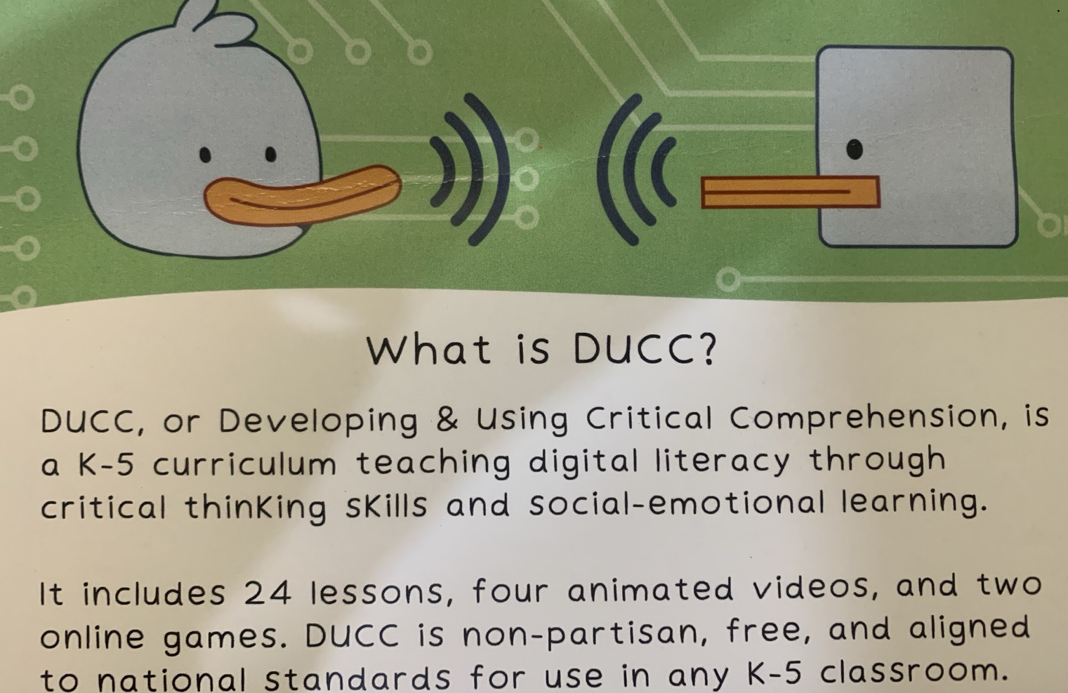 DHS also awarded PERIL a grant to create Developing & Using Critical Comprehension (DUCC), an approach to K-5 digital literacy, which is approved by the American Academy of Pediatrics (AAP) and other groups.